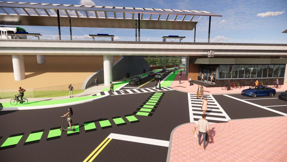 This project will provide benefits to a wide range of people. People walking will have improved sidewalks which are wider, better lit and provide more direct connections around the King Street Metro Station. People riding bikes, e-bikes or scooters will have a separate space from pedestrians or vehicles, reducing the potential for conflicts and providing connectivity to the Metro Station. For people driving or taking the bus, the road network will remain the same, but providing dedicated spaces for pedestrians and cyclists will reduce other roadway users and make it easier for vehicles to navigate the space.
