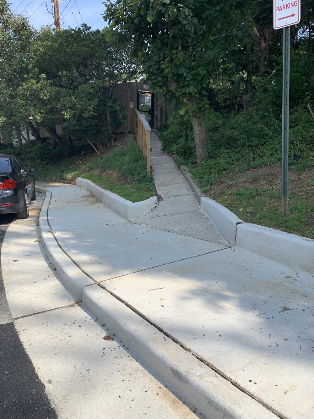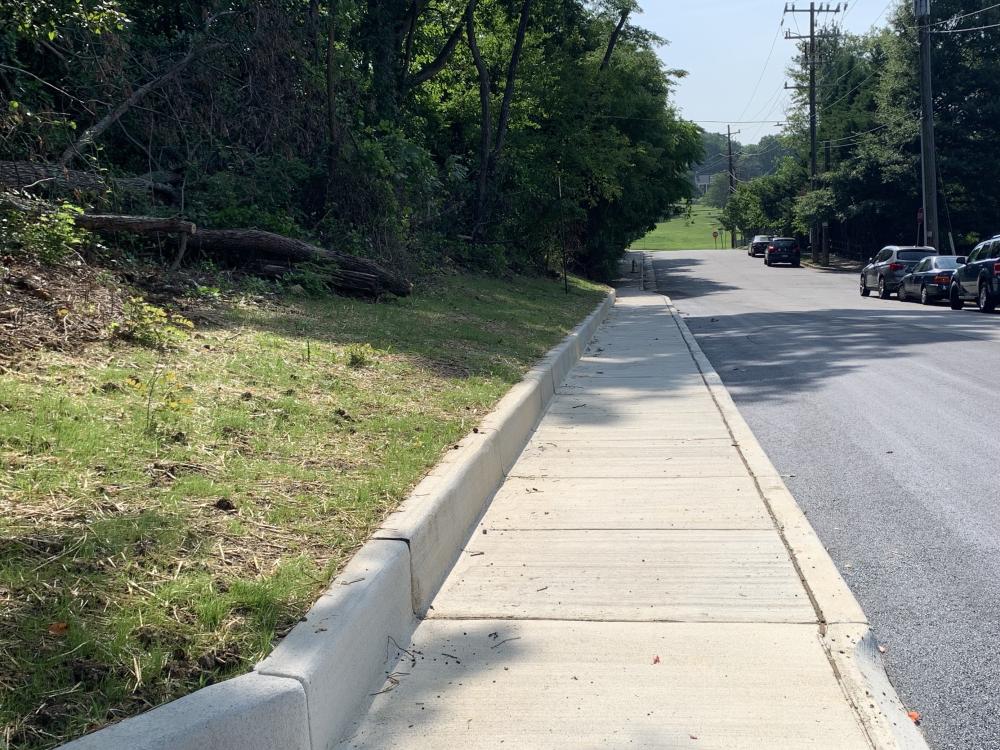 The draft concept plan has been revised in response to resident concerns about impacts to the adjacent park space. The revised plan reduces impact to trees (preserves the largest tree) and further reduces new impervious surface, with 82% of the sidewalk proposed to be built on existing pavement.