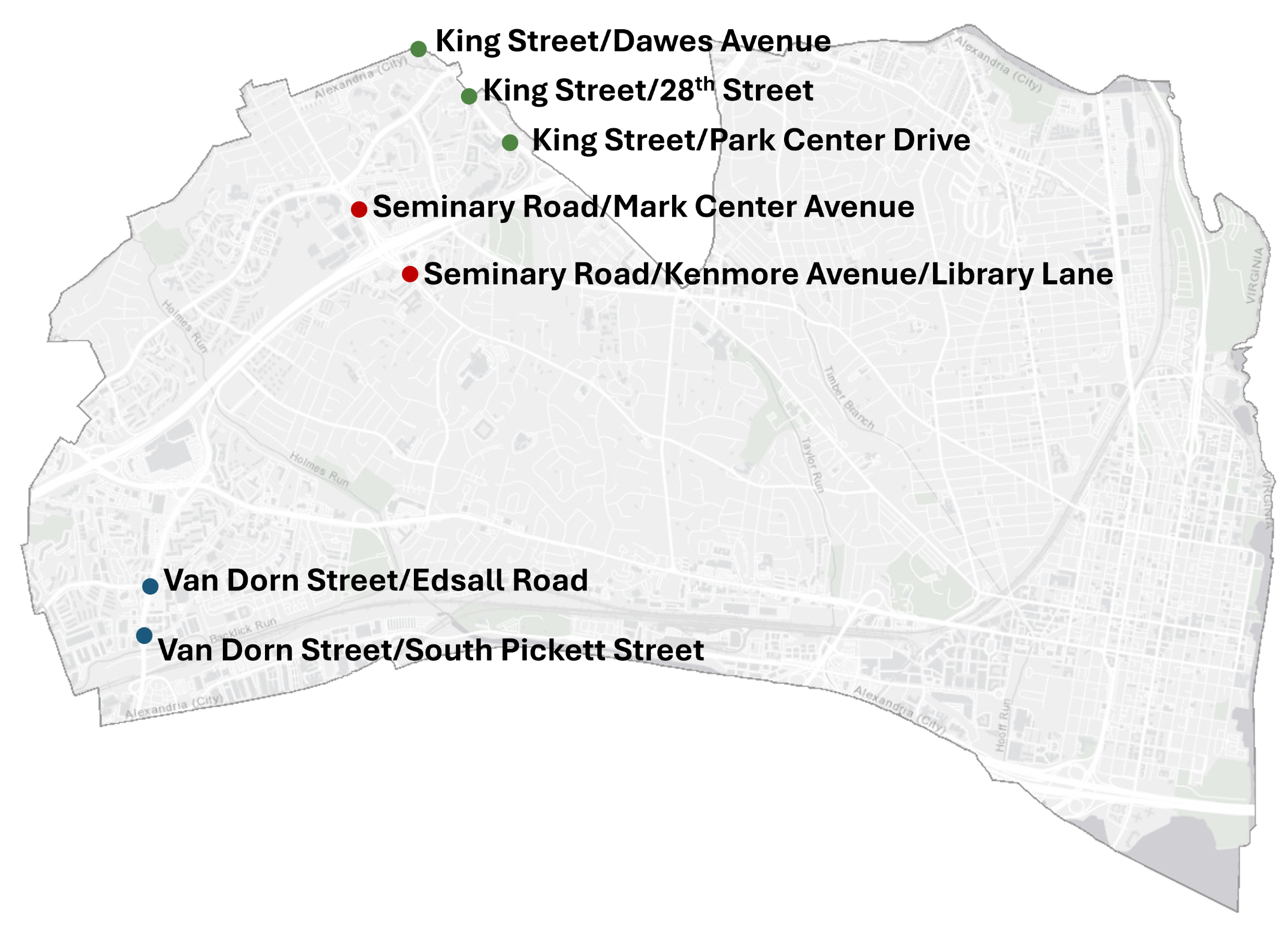 The purpose of this project is to evaluate safety needs and develop conceptual design options for seven high-crash intersections in Alexandria.