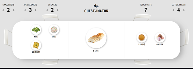Whether you’re hosting for the holidays or preparing a dish to bring and share, the Guest-imator tool from SaveTheFood.com can help you plan ahead to keep your guests full without excess food waste.